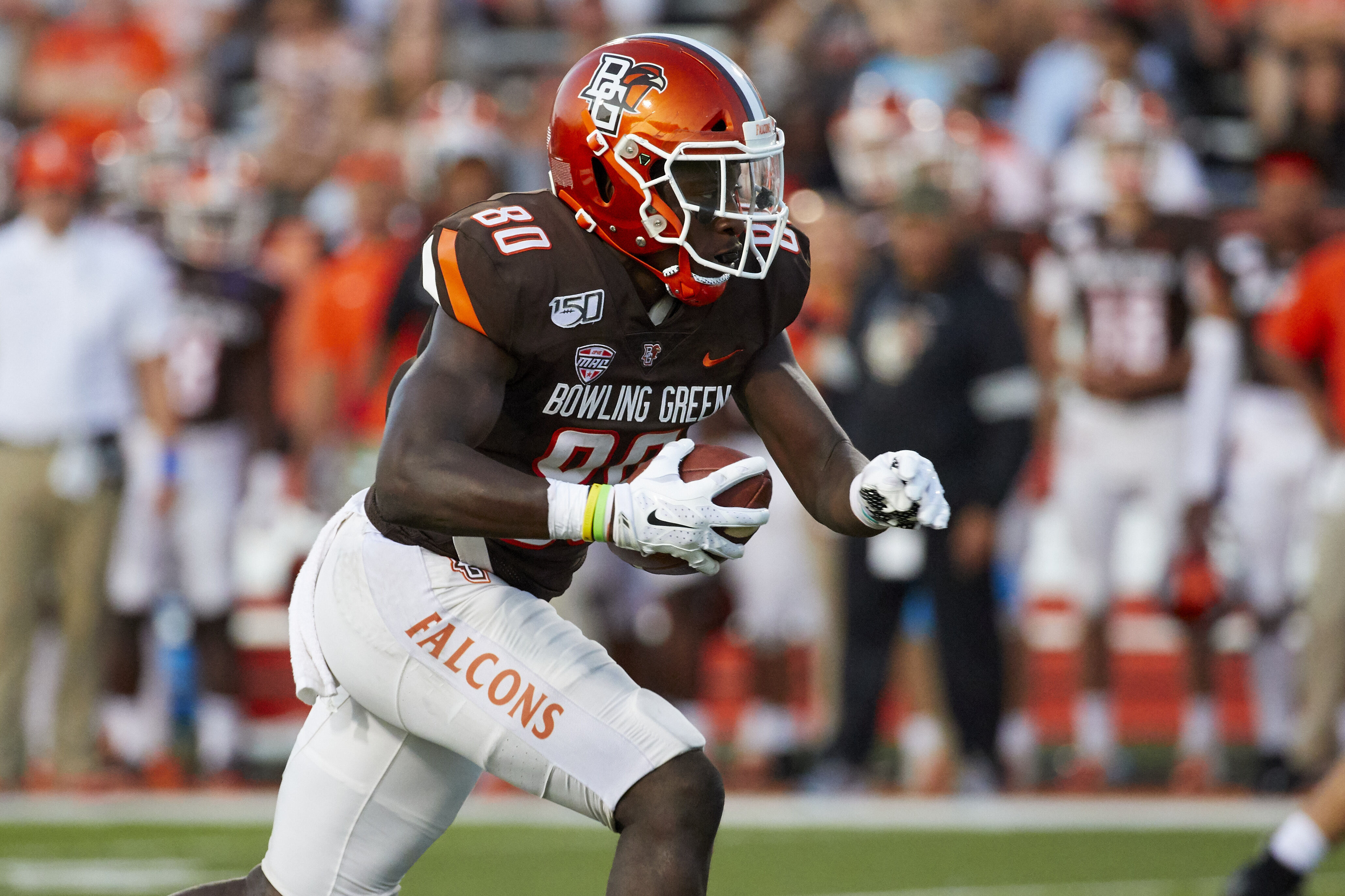 Bowling Green wide receiver Quintin Morris (80) runs the ball against the Morgan State during an NCAA football game on Aug. 29 in Bowling Green.